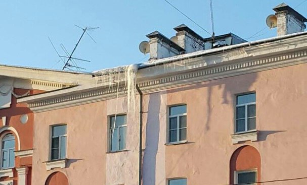 В этом сезоне в Твери не было особо тяжёлых случаев с падением льда с крыш домов. Да, пару человек получили лёгкие травмы, кто-то серьёзно испугался. Сосулька на Вагжанова, 12 претендует на титул «первой ласточки» — примерно метровая льдина в случае падения точно снесёт вывеску аптеки, а если упадёт на человека…