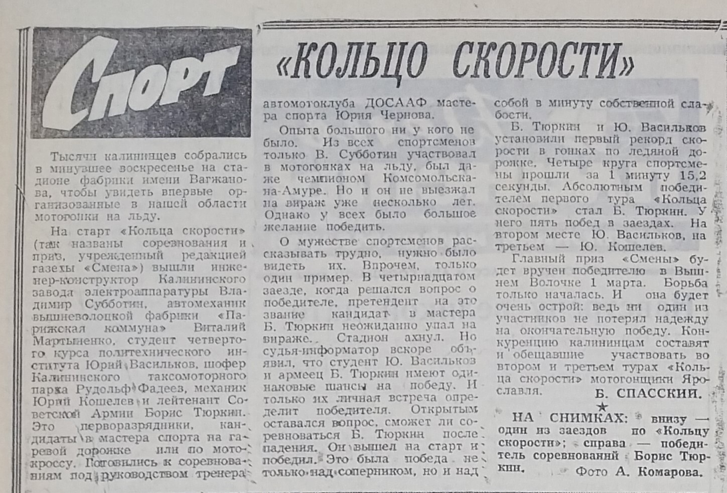 22 февраля 1970 года в Калинине впервые прошли мотогонки на льду, напоминает Главархив Тверской области.