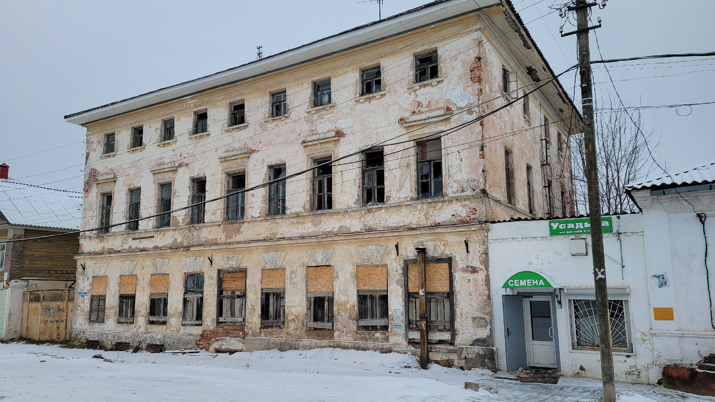 Затем я увидел одно из главных зданий Бежецка — красивейшую усадьбу середины XIX века. Это здание будто переносило меня в Санкт-Петербург. Окна первого этажа были все заделаны решетками, поэтому было ясно, что до последнего здесь располагались различные банки. Сейчас состояние усадьбы выглядело очень плачевно. Казалось, что еще немного, и она просто рухнет.