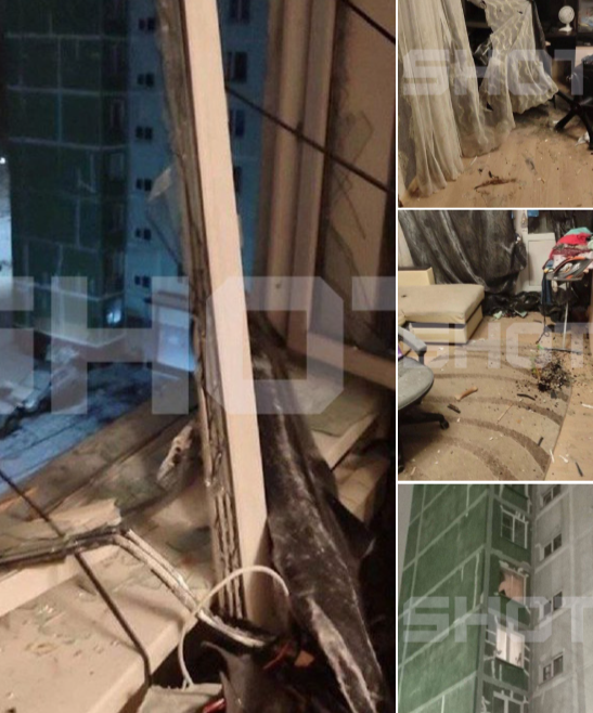 Очевидцы рассказали Shot, что фрагменты беспилотника попали в окно на 6-м этаже девятиэтажки на улице Автодорожная в районе 22:30. Предварительно, пострадавших нет.