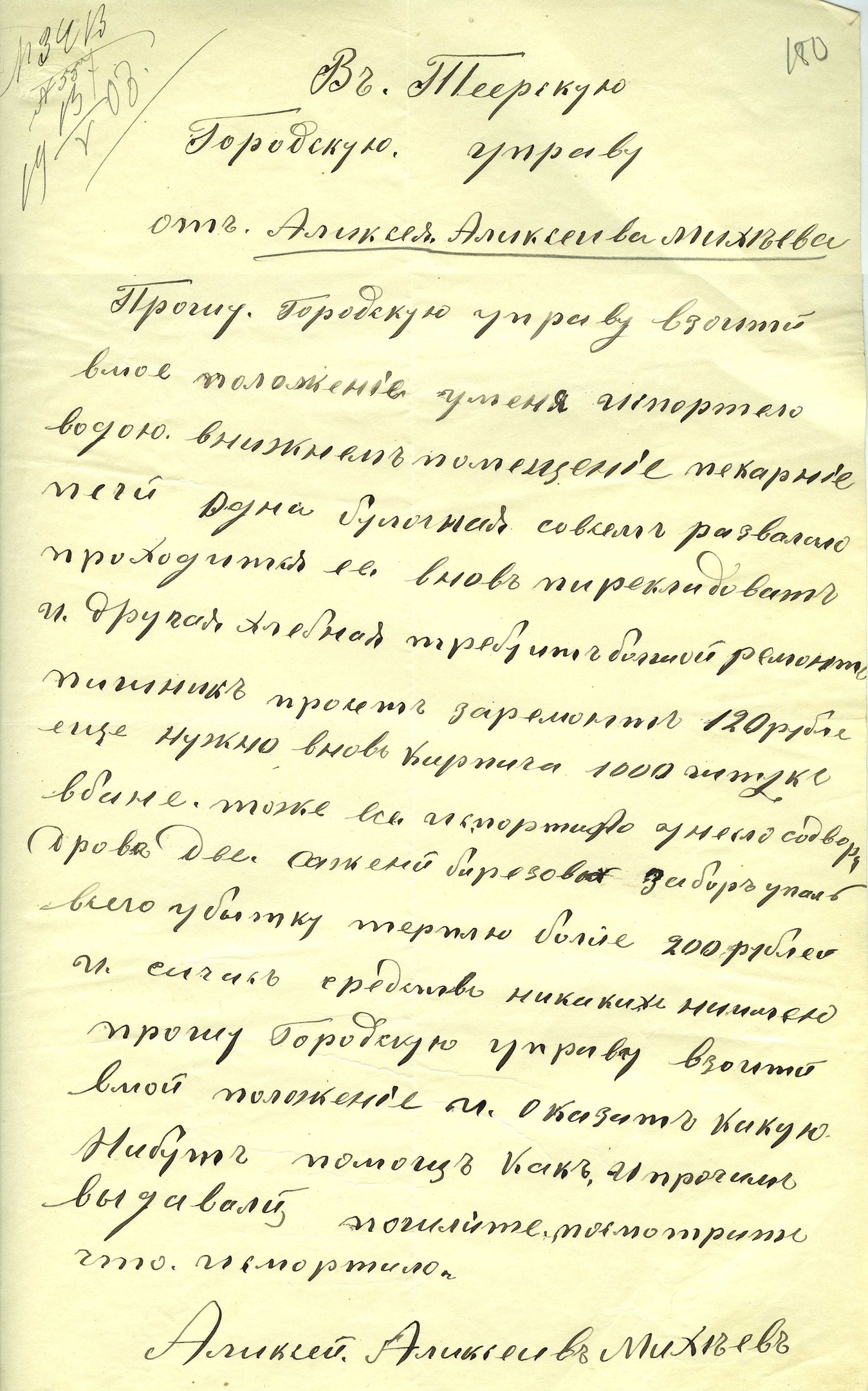 — Донесение тверского полицмейстера тверскому губернатору о затоплении г. Твери. 17.04.1908 г. // ГАТО. Ф. 56. Оп. 1. Д. 5471. Л. 12.