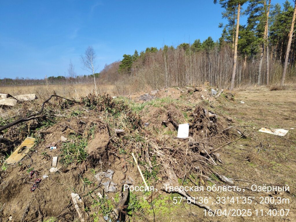 В ЗАТО Озерный Тверской области проводились работы по благоустройству территории, в результате чего весь мусор был вывезен на поле, что, безусловно, негативно сказывается на окружающей среде.