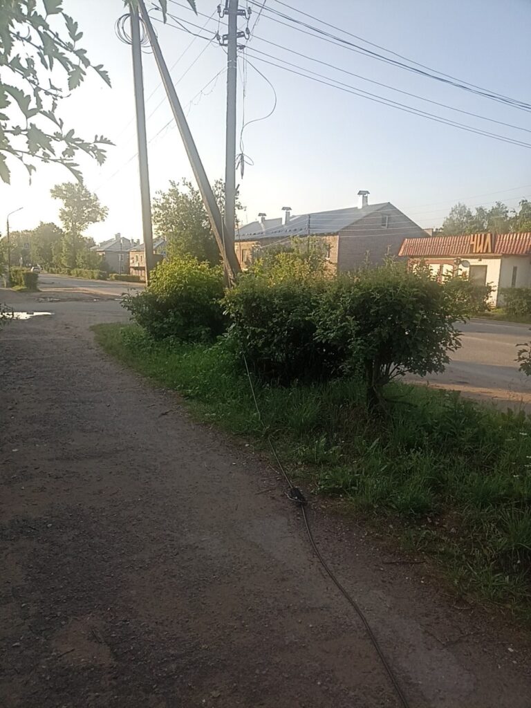 Наш читатель из Калязина сообщает, что инцидент произошел на днях. Электропровод, висевший на древних опорах, вероятно не выдержал порыва ветра и упал «с небес» на грешную землю. К счастью, рядом никого не было и происшествие обошлось без пострадавших.