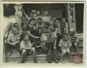 — Члены редколлегии газеты «Ёжик» и художники оформители лагерной газеты «Костёр» и отрядных дневников. Б.д. // ГАТО. Ф. Р-2136. Оп. 1. Д. 1050. Л. 37;