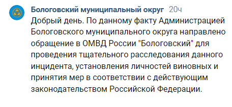 Также, как проинформировал бологовский депутат Сергей Кормаков, он направил информацию о происшествии в Следственный комитет.