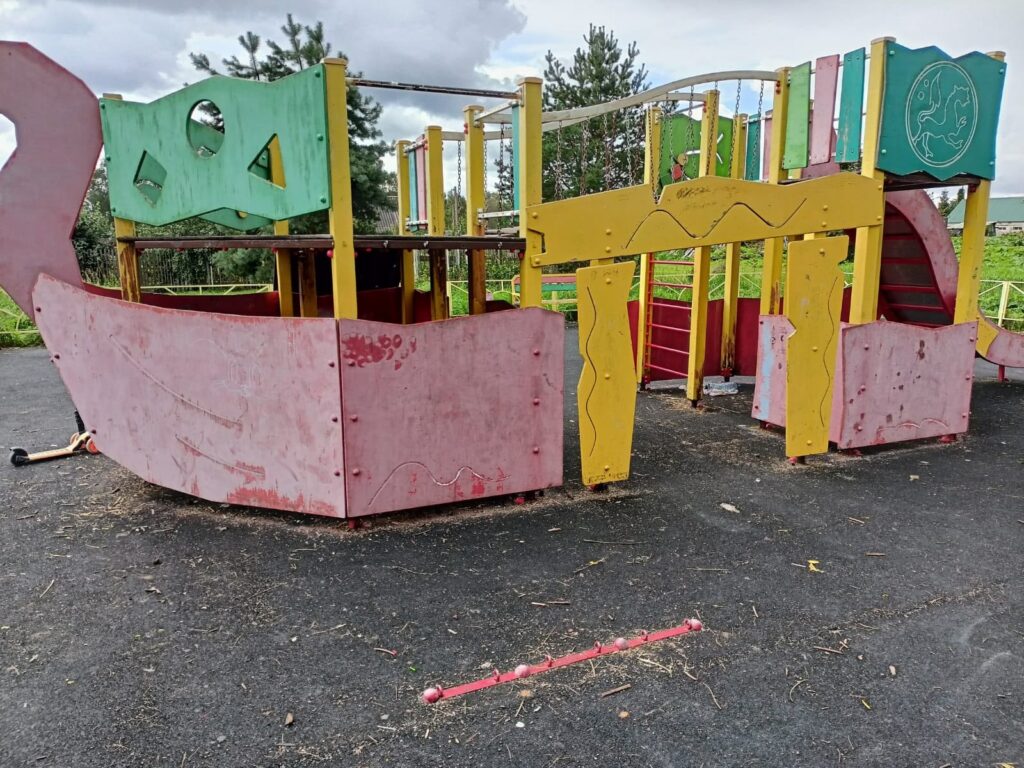 В поселке Победа Ржевского муниципального округа есть детская площадка, когда -то она была яркая и интересная, в то же время администрация обещала повесить видеокамеру для профилактики вандализма.