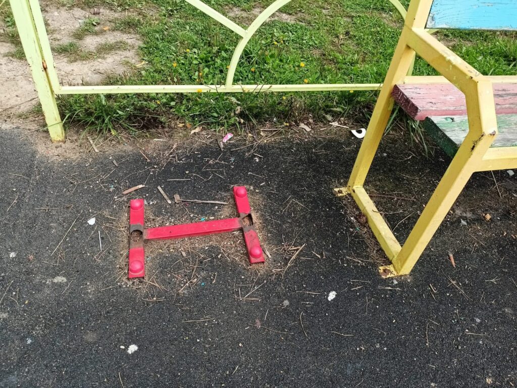 — на самой площадке торчат штыри, о которые бегая спотыкаются дети (не трудно представить, что может случиться если ребенок упадёт на них головой или виском);