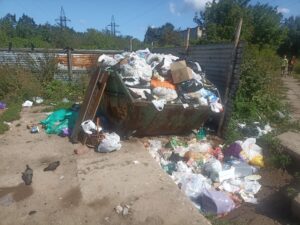 Стало не лучше, а ещё хуже, если месяц назад на ней было 2 мусорных контейнера, то уже можно увидеть совсем другую картину, где должен стоять контейнер лежит мусор ещё и в яме почему-то?!