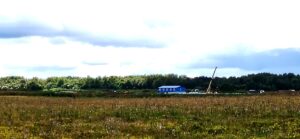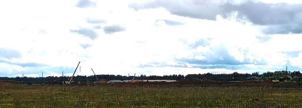 Строительство идёт полным ходом. Ночью всё поле залито светом фонарей. Электричество к объекту подключили, значит какие-то документы в Россети предоставили. Ради этой птицефабрики идёт реконструкция газопровода, идущего от Есинки мимо деревни Кузьмарино в Алёшево и Турбаево.