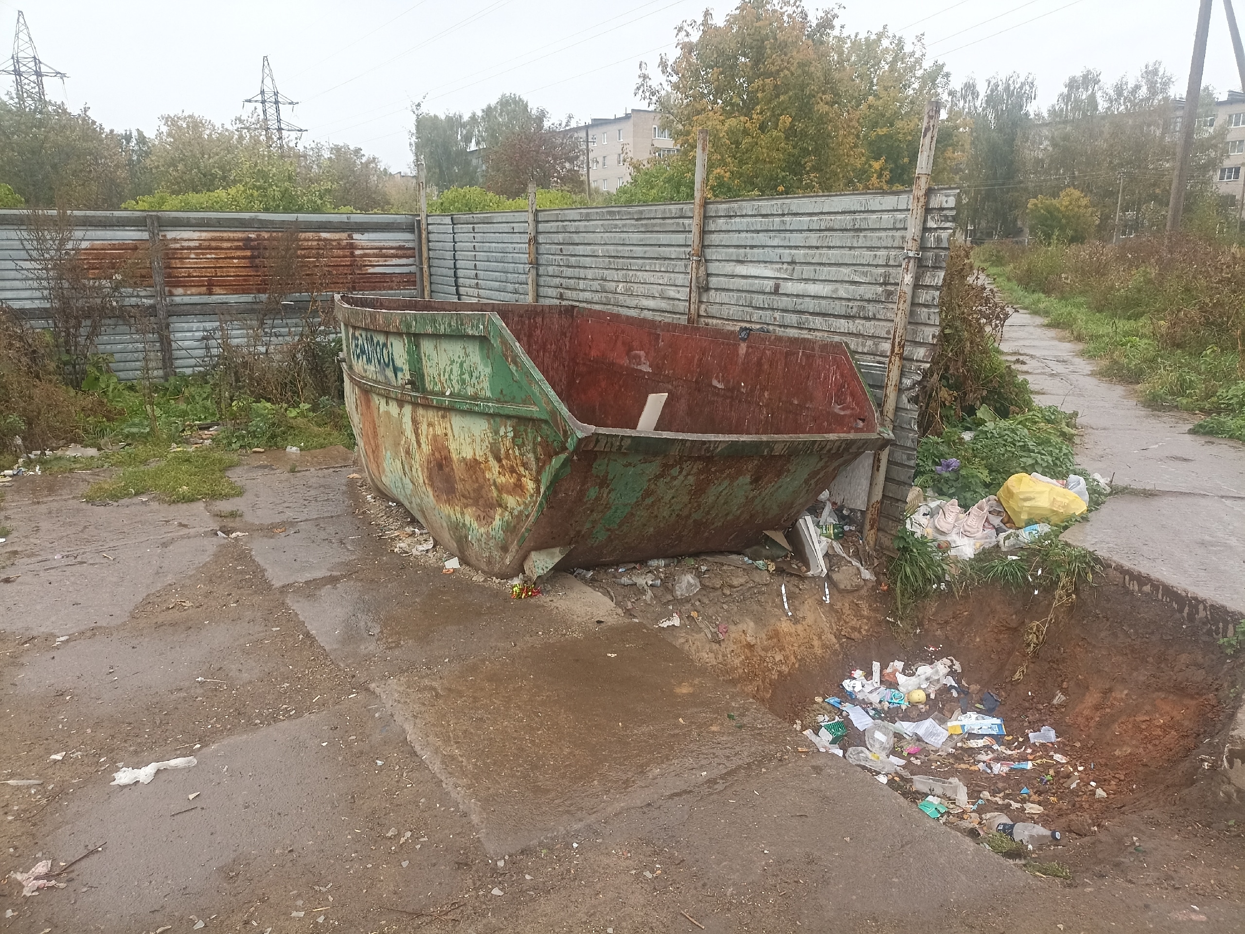 Уже несколько месяцев в социальных сетях калязинцы пишут про плачевное состояние контейнерной площадки у ДОСААФ.