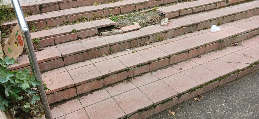 На протяжении длительного времени лестничные марши перед торговым центром на проспекте Курчатова находятся в ненадлежащем состоянии: плиточное покрытие разрушено и частично отсутствует. Указанное привело к падению женщины. Пострадавшая госпитализирована, ей потребовалось оперативное вмешательство. Многочисленные обращения в компетентные органы результатов не принесли, мер к организации ремонтных работ не принято.
