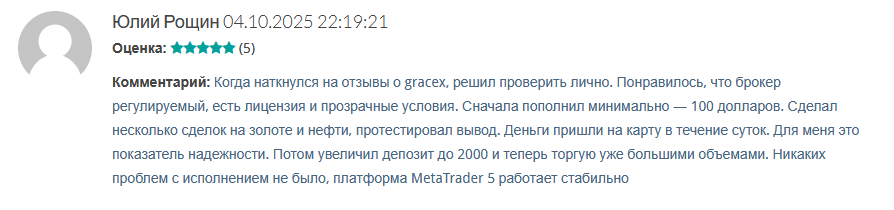 Если проанализировать отзывы о Gracex, можно заметить: большинство комментариев схожи в одном — удобный интерфейс, чёткие условия и отсутствие технических проблем.