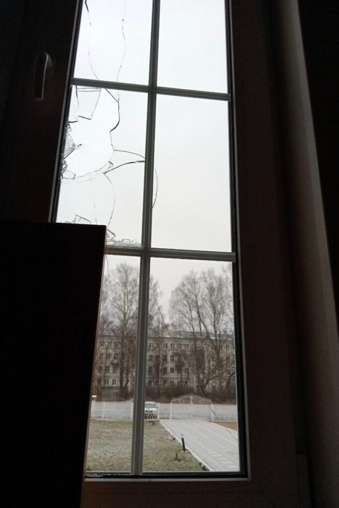 По данным из соцсетей, мужчина перелез через забор, а потом в течение нескольких минут дебоширил: выдрал почти все декоративные фонари, сломал трассу кондиционера и разбил стекло в алтаре.