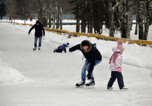 В областной столице продолжают работать ледовые площадки для катания на коньках – это как крупные городские катки, так и небольшие площадки в районах города.
