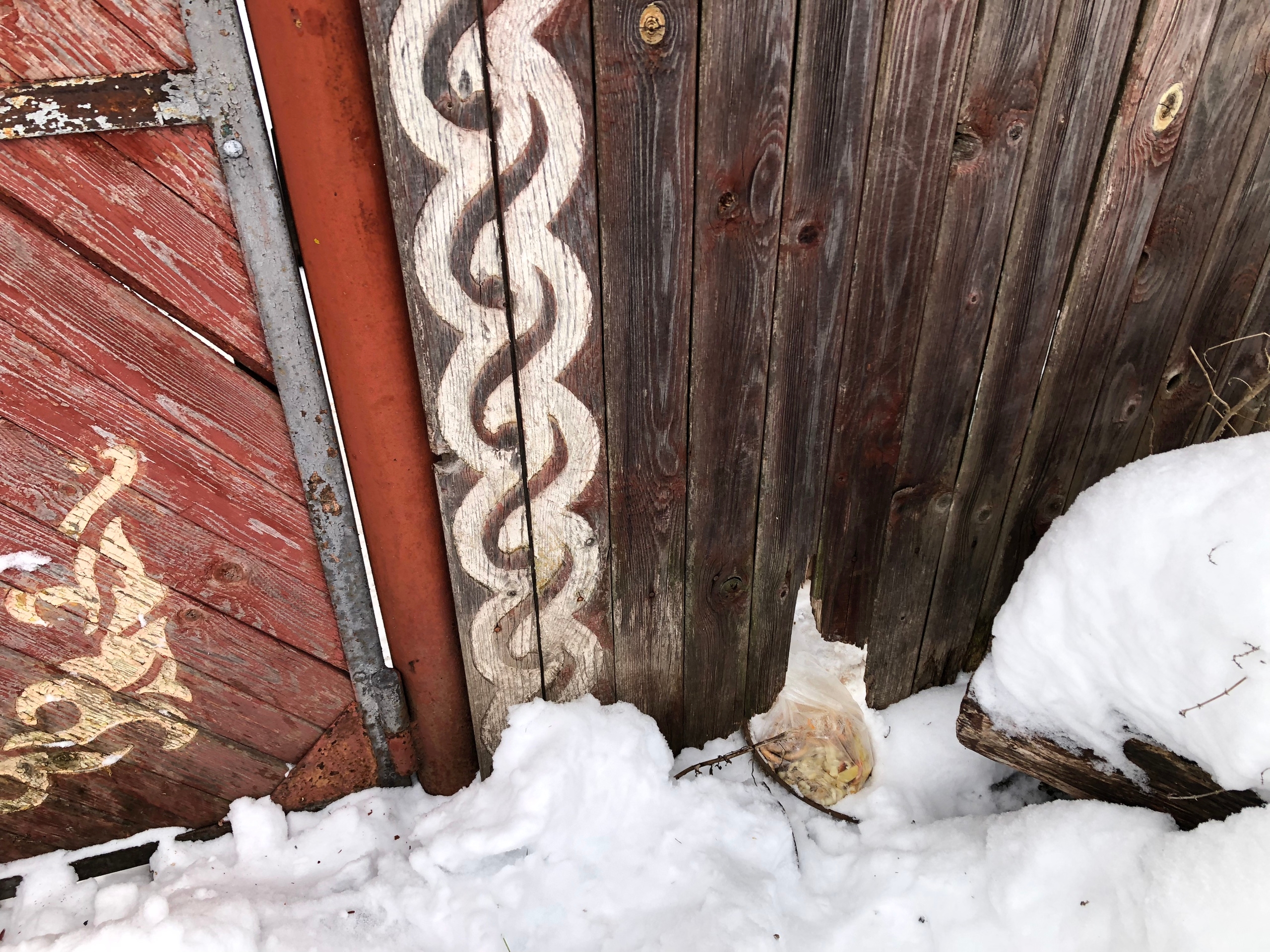 Единственное фото, которое можно публиковать (так как собака находится за забором частной собственности) — это дыра в заборе, которую сделал Тунгус. Возможно, это единственное окно, через которое ему поступаем еда от добросердечных соседей.