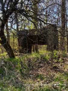 В Тверской области, недалеко от железнодорожной станции Осташков, которая не раз подвергалась бомбардировкам немецкой авиации, в лесных зарослях скрывается небольшой фрагмент здания.