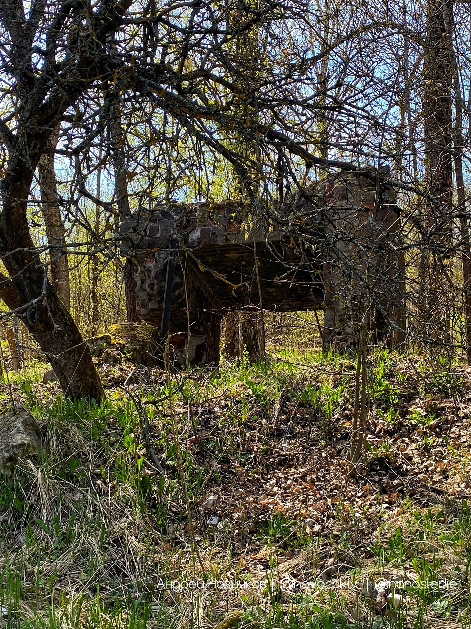 С течением времени постройка, сохранившая свои несущие стены, покрылась мхом и немного углубилась в землю. При желании можно разглядеть клеймо «И.П.М.» на дореволюционной кирпичной кладке.