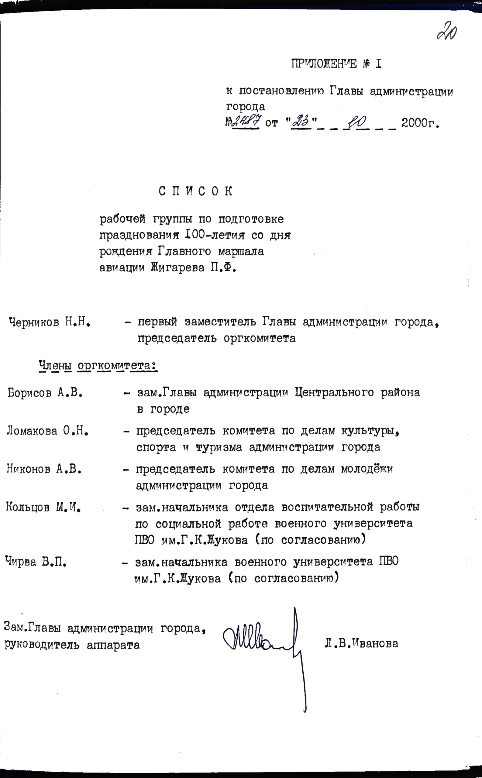 С учетом больших заслуг перед Родиной в годы Великой Отечественной войны и в целях сохранения памяти о подвиге нашего земляка Главой города Твери было издано постановление №2487 от 23.10.2000 г. о праздновании 100-летия со дня рождения маршала авиации Павла Фёдоровича Жигарева, утвердившее серию торжественных мероприятий: издание буклета, ️️подготовку экспозиции в краеведческом музее, изготовление афиш и пригласительных билетов, ️️возложение цветов к мемориальной доске маршала и ️️собрание в честь знаменательной даты.