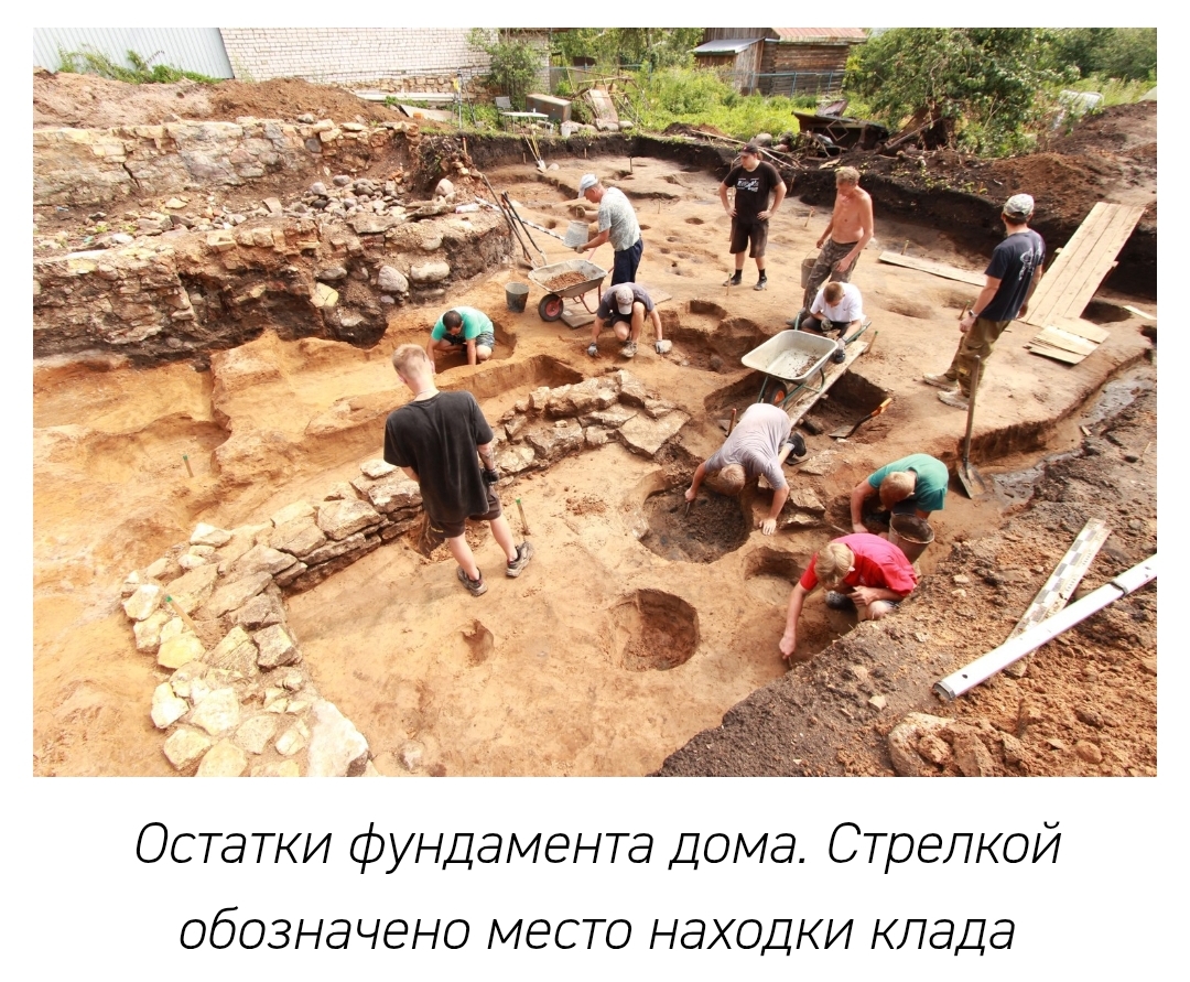 Клад из 409 золотых монет, выпущенных с 1848 по 1911 год, был спрятан в глиняном горшке под каменным фундаментом дома. На сегодняшний день это один из самых больших кладов золотых монет конца XIX – начала XX века, найденных при археологических раскопках.