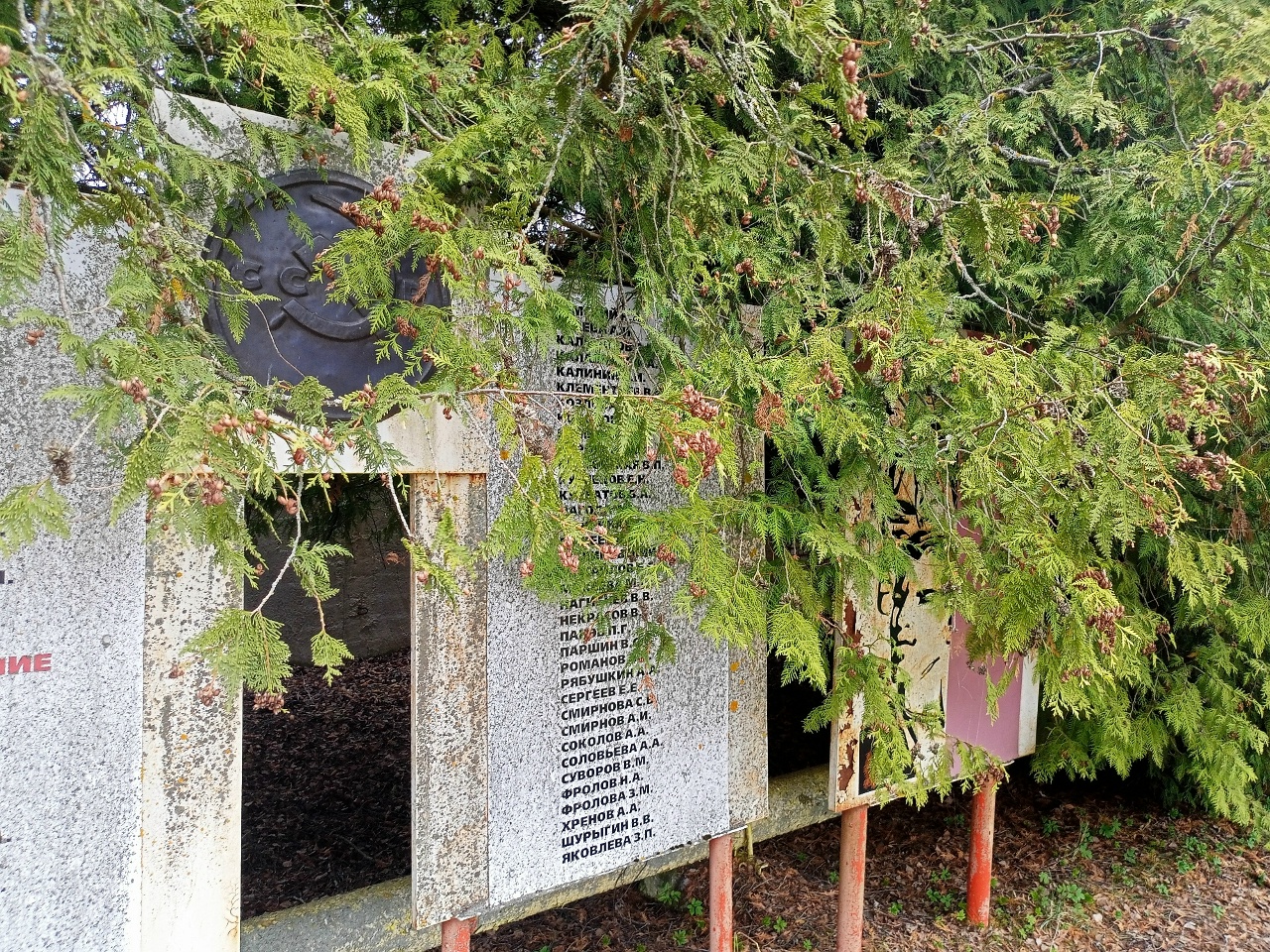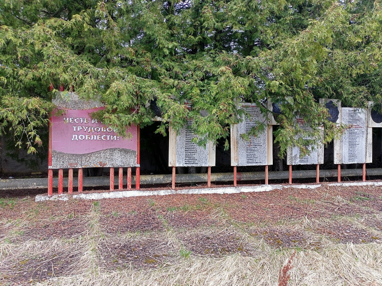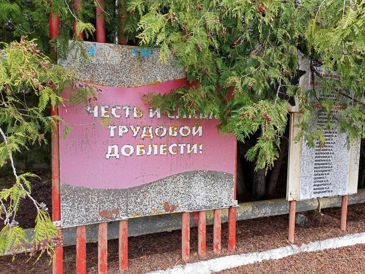 Но в контексте обстоятельств рядового работника покоробило то, что эти так называемые «ёлки» являются частью мемориала и аллеи памяти, которые были в советский период установлены в честь приблизительно 150-ти тружеников завода, награждённых за трудовую доблесть различными наградами (начиная от Ордена Ленина). Но это только часть мемориала. Венчает аллею памяти высокая стела с фигурой воина в человеческий рост, рядом расположена чаша и подводка для размещения «Вечного огня». Эта часть мемориала в честь 15-ти работников завода, погибших в Великую Отечественную войну.